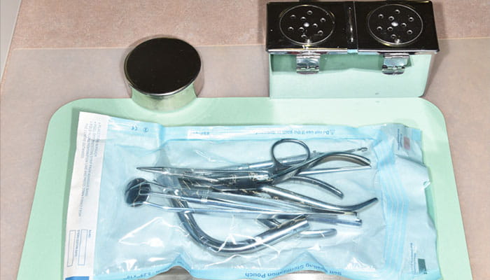 滅菌した器具は紫外線ランプのついた収納庫に保管しています。
